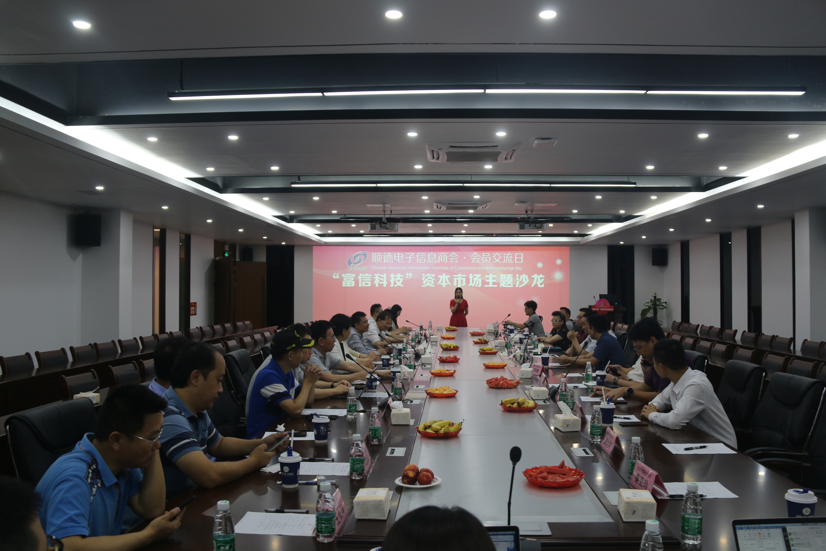 5 月 15 日,順德電子信息商會? 會員交流日——“富信科技”資本市場主題沙龍在廣東富信科技股份有限公司順利舉辦。本次活動特邀了富信科技董事長劉富林、中泰證券上海投行總部總經理曾麗萍、執行總經理寧文昕、德和衡律師所合伙人王曉芳、弘德投資總經理甘芳等資本市場領域專家到場分享。